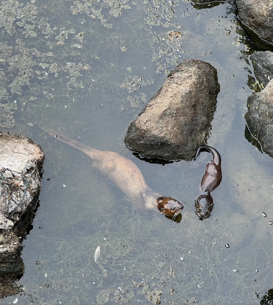 At a friend’s homeTiger Lily in her garden realmView from Tiger Lily’s home in InvernessGathering at Abbott’s LagoonOn the way there and backGreat Blue Heron surveys opportunity for lunchJuly , 2022 – Great Blue Heron and OtterJuly, 2022 – mother and her two baby ottersJuly, 2022 – Mother and Baby – high tide