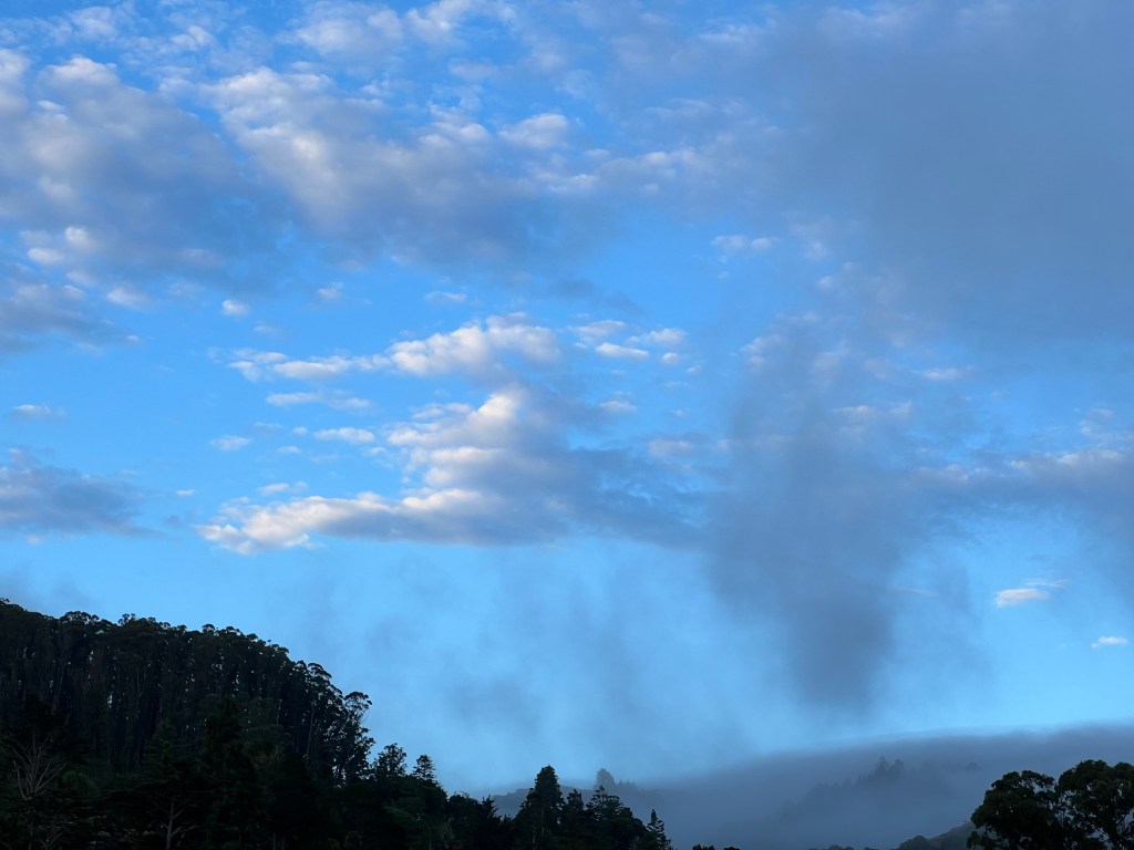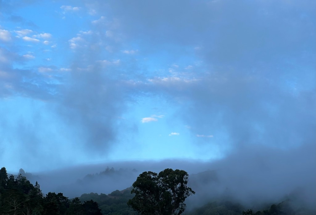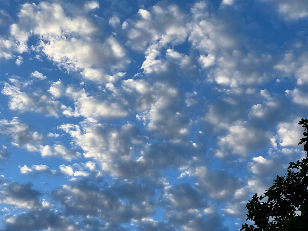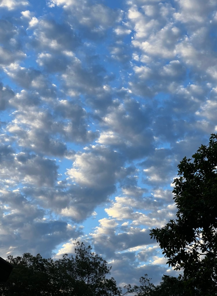 I’m entranced with the morning sky these days, the whole expanse and the parts. It’s a Rorsach test for my inner-outer mood, for the movement of breath in and out.