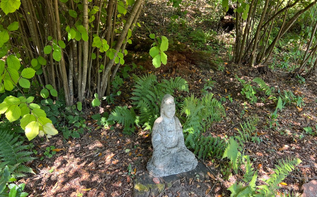 Yesterday I walked along the fairy trail. It was raining an hour before, and then the sun came out though I was sheltered in an Oakwood Valley of ferns, trees, and streams. It felt magical and now I peruse the photos and see images in the water, trees, moss, and lichen to explore.When I returned home I saw the camellia bush offering buds and blooms.