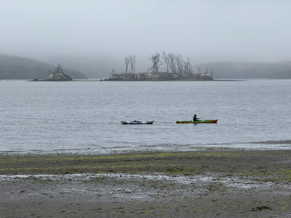 I read that salmon are in Coyote Creek near where I live, so I went to check and didn’t see any today, which may be because the tide is pouring in, so no ducks, fish, or otters, only waves in the water and reeds.