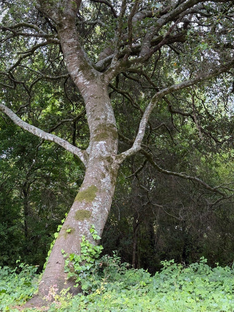 In one tricky spot, I met three young people enjoying a snack. As I debated how to traverse the roots, one of the men offered two hands to help me down. I was reminded of years ago when on a hot day I’d walked from Pantoll down to Stinson Beach where, fully clothed, I walked straight into the Pacific Ocean and swam. When I emerged, a young boy stood there offering me a towel. Helpers abound.