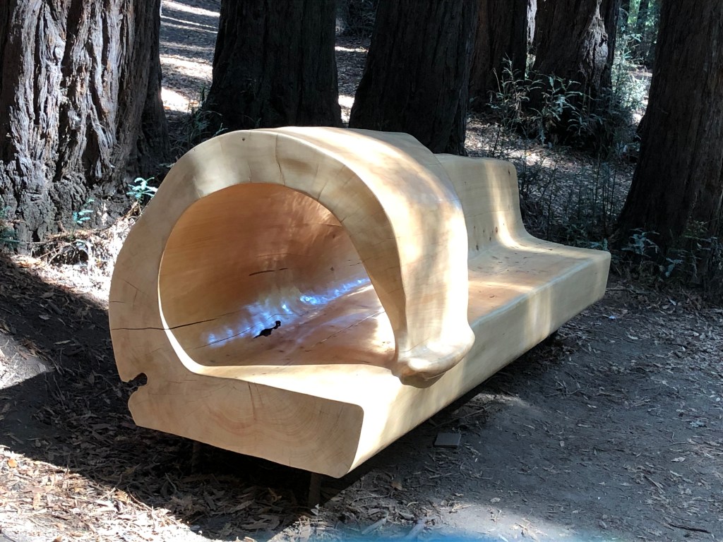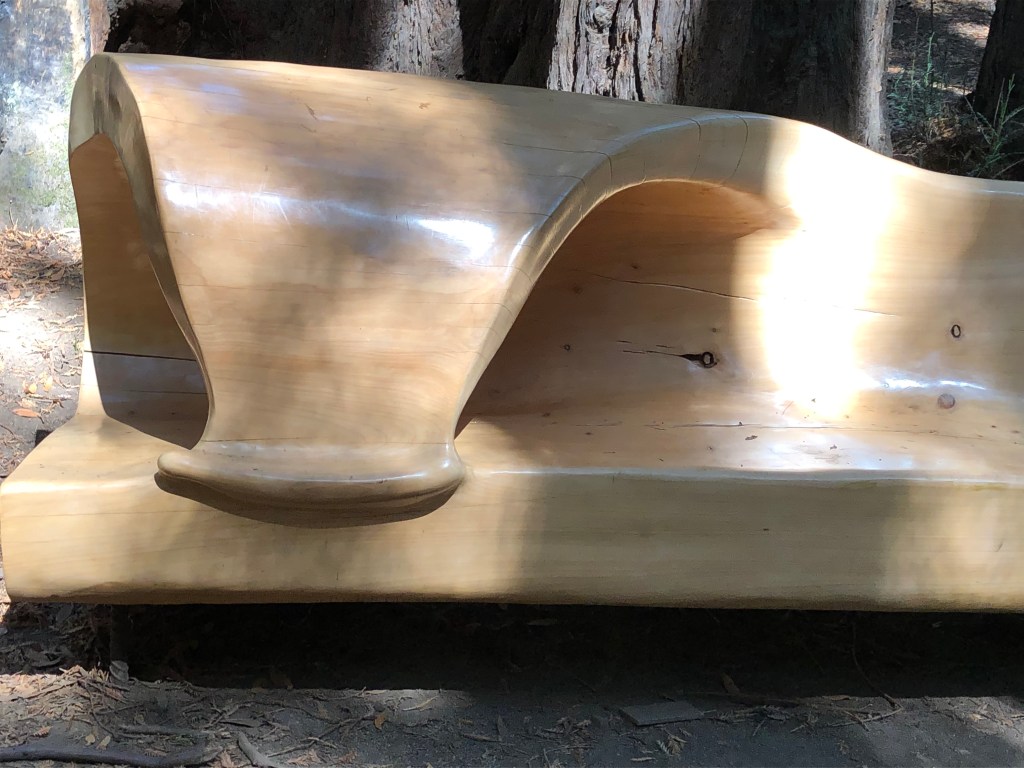 Sculpture Bench in Old Mill Park Big Wave Bench by Artist and Arborist Chuck Oakander