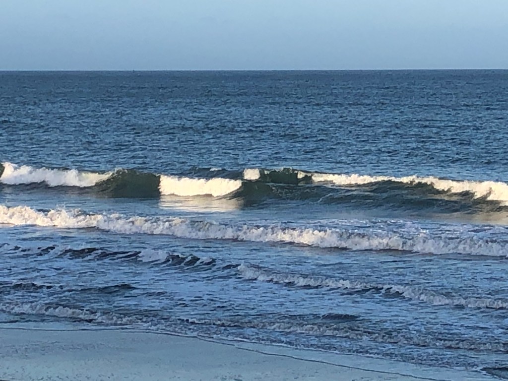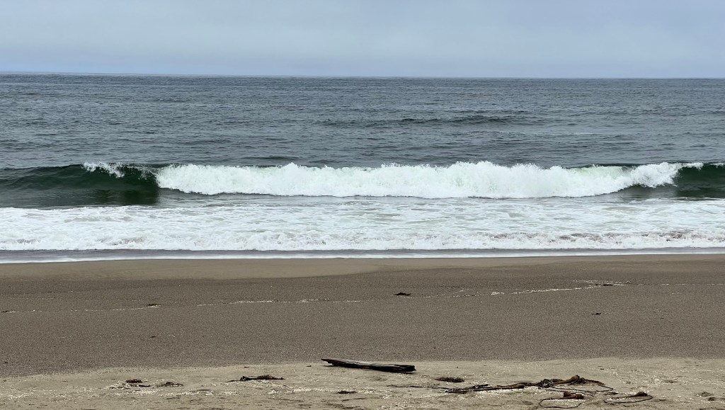 I spent the day with my 18 month old grandson, and then drove over to the ocean to Half Moon Bay for the night. What a gift. The sound of the ocean – the waves – all drops and rolls in trust and ease.