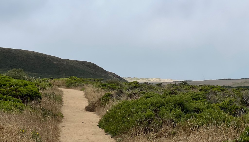 Yesterday I was above the waves as I sat on the ground at Pierce Point. I watched, mesmerized, as the waves below seemed to be moving slowly and methodically, their white tops clearly defined. Sitting above, I saw an orchestrated rhythm. If I’d been on the beach below, the waves might have seemed random, and violent perhaps, as they blew apart with a crash.