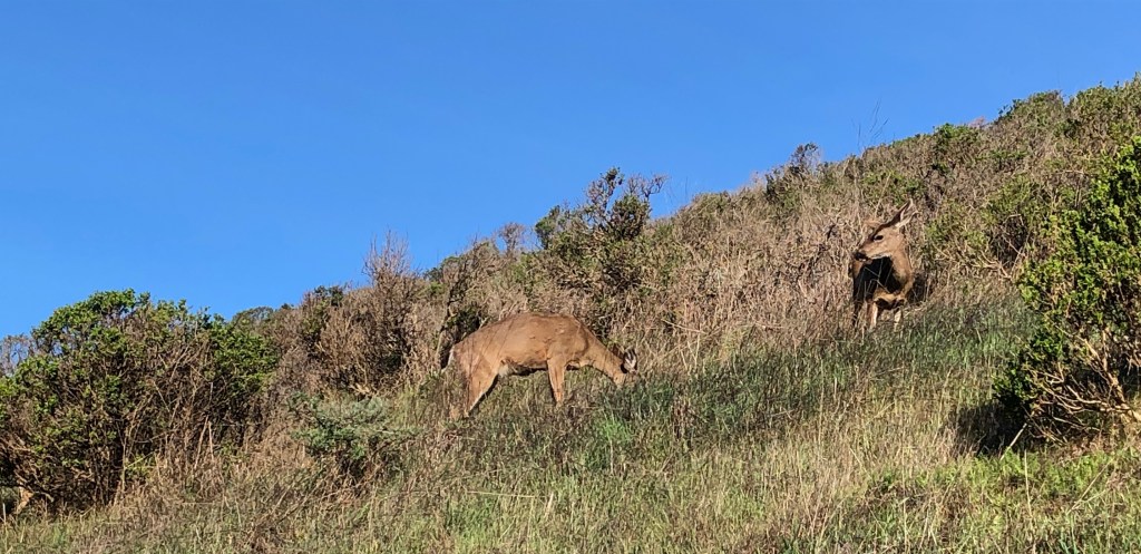I don’t understand, and yet when I spread my wings for Jarvis I felt such light and freedom. Easy for me to say, of course, as Lee and I were the only two people in a landscape of enchantment. We were accompanied by three deer who saw no threat in us, and who knows what other beings munching, sleeping, and thriving in this world. We saw two snails mating. They are hermaphrodites, so meeting another snail makes it easy as to the process of reproduction, though of course there are those shells, so maneuvering is required, and I love seeing two as one.