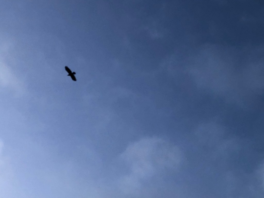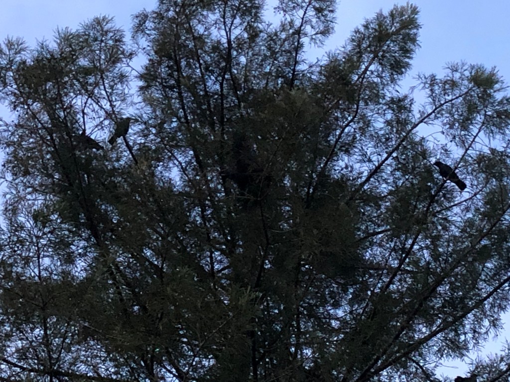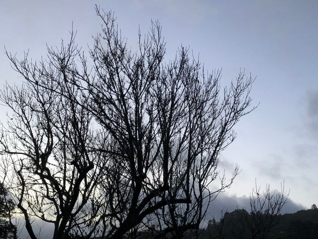 And now I look up and a squirrel is running along the branches of the redwood tree outside my window. Who wants to romp, squirrel or me? And now I look at the trunk of the tree. Let contentment root. Birds are tweeting and threading movement in the sky. There are no clouds today, and the blue seems still until a hawk, crow, raven, or vulture sweeps through.