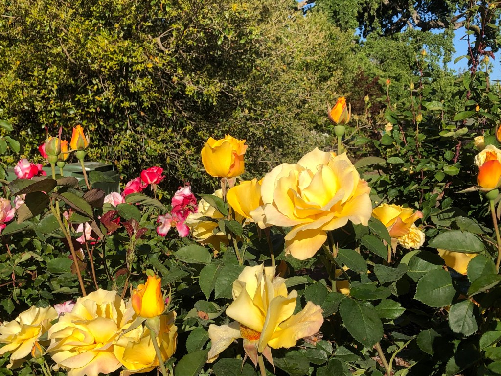 After rain in the night, I rise to go to Sausalito and immerse in the sounds of the bay. I meet some people who’ve come down from Tahoe. After a winter of white, they want to see green. We have green, blue, purple, and pink.